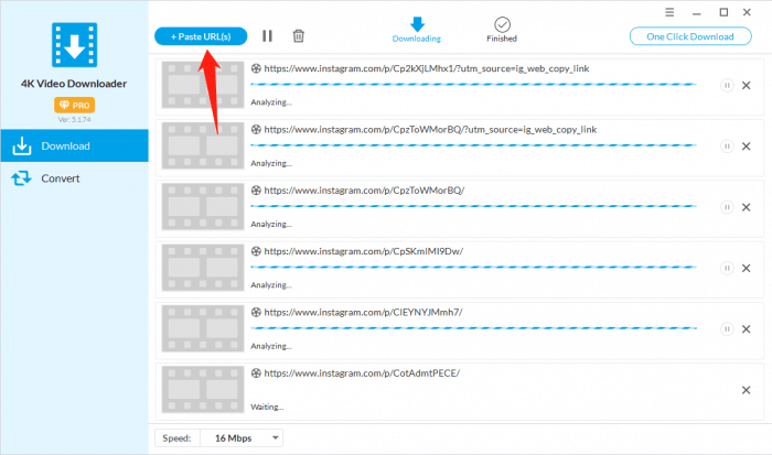 打开 4K Video Downloader,点击「粘贴链接」,软件会自动解析 Instagram 内容,无需手动设置。